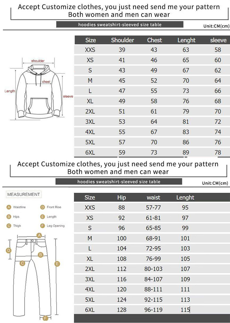 Sizes: S, M, L, XL, 2XL, 3XL, 4XL, 5XL, 6XL.