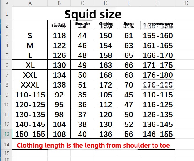 Sizes: 115, 125, 135, 145, 155, S, M, L, XL, XXL, 3XL, and one-size-fits-all options.
