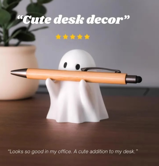 Cute Design: Adorable ghost-themed pen holder with various playful poses.